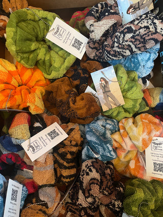ZingaraTerry rare vintage materials guarantee extra special red carpet moments. Our Scrunchies are hand made using vintage towels. They take a lot of time, elbow grease and love to make and are only released in limited quantities.